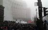 На Майдане Незалежности, где идет митинг из-за отказа Украины подписывать соглашение об ассоциации с ЕС, люди не расходятся под дождем, переход под площадью забит бойцами Беркута.
