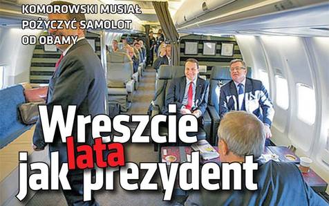 «Відчути себе президентом» Коморовський зміг цього року, коли Обама «позичив» йому літак для подорожі по Сполучених Штатах. Президент Польщі, як зажди, прибув до Вашингтона на рейсовому літаку. Далі у нього був запланований візит на найбільшу у світі морську базу у Норфолку. Американські посадовці дозволили йому скористатися літаком Військо-повітряних сил США. Польська преса з цього приводу жартувала – мовляв, нарешті Коморовський літає як президент.