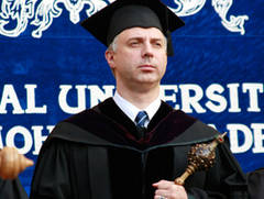 — Була спроба урізати наш статут, тобто забрати з нашого статуту всі положення, які демонструють наші досягнення, пов’язані з другою іноземною мовою. Тобто я маю на увазі і з другою робочою мовою англійською, і з іншими речами — liberal arts і таке інше… Але ми відстояли статут, і Міністерство нам затвердило той статут, який нам був потрібний. Так що тут в принципі все гаразд. Є намагання зробити нам щось погане, але поки що ми на виду, нам довіряє суспільство, довіряє преса і ми намагаємось відповідати цій довірі.