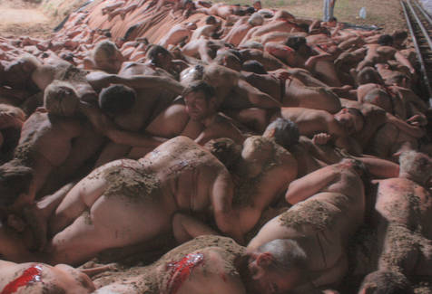 — Парень, обхвати ступни соседа справа! Затылком между ног соседке на нем! А вы, женщина, ложитесь парню на живот!