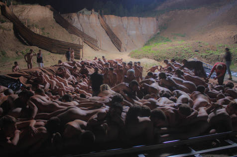Пикантная деталь: сбросив халаты, согласившиеся на съемку голышом «уважаемые актеры массовых сцен» первое время очень стеснялись. Мужчины прикрывали руками причинное место, женщины обхватывали груди. Точь-в-точь как на хронике расстрелов той войны.