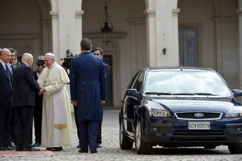 Під час свого першого візиту до президента Італії Джорджо Наполітано Папа Римський Франциск відмовився від президентської охорони і приїхав на цю зустріч на своєму особистому автомобілі – скромному Ford Focus.
