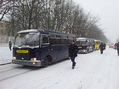 Васильківці нарахували понад 20 автобусів з бійцями спецпідрозділу МВС, які заїхали в двір коледжу.
