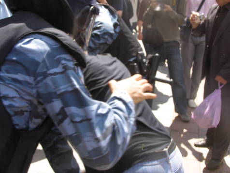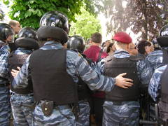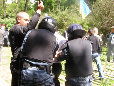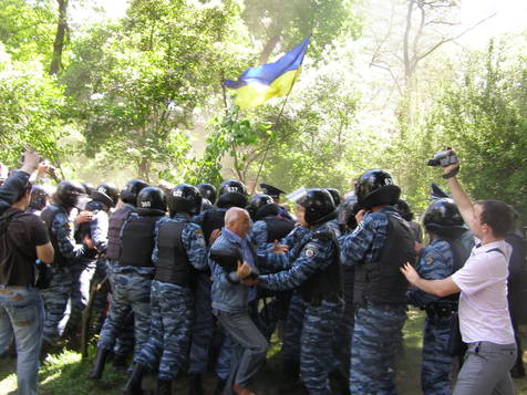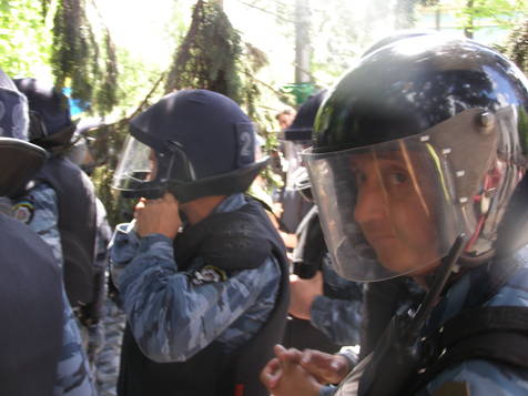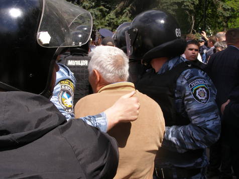Когда же новые палатки прибыли из магазина, толпа двинулась с площади в парк ставить палаточный городок. Тут-то все и началось. Из автобусов стали выбегать бойцы «Беркута». Они плотным кольцом окружили тех, кто ставил палатки, повалили всех на землю и, в конце концов, уволокли их в «автозаки» вместе с неразрешенными палатками. Причем со стороны не было видно разницы между обращением «беркутовца» с палаткой и человеком.