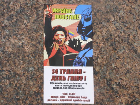 На выходных под стенами Верховной Рады в Киеве прошла Всеукраинская акция протеста против псевдореформ и псевдореформаторов – именно так ее назвали сами организаторы. Бесславно завершившиеся акции в регионах стали лишь прелюдией к действу, которое происходило в столице. Причем сами протестующие с самого начала настраивались (или были умело подведены к этому) именно на силовом, конфликтном итоге акции. Взглянуть только на листовку, посвященную ей: протестующая женщина перед безликой фигурой бойца «Беркута». На заднем плане – «кучка бесчинствующих молодчиков», как оценили бы их сотрудники милиции. Впрочем, возможно, что именно так и оценили. Министр внутренних дел Анатолий Могилев уже пообещал отнести видео со «Дня гнева» в прокуратуру. Не забыв при этом разместить на официальном сайте возглавляемого им ведомства новость о том, что после инцидента в Мариинском парке в больнице «с телесными повреждениями» оказался один сотрудник милиции.
