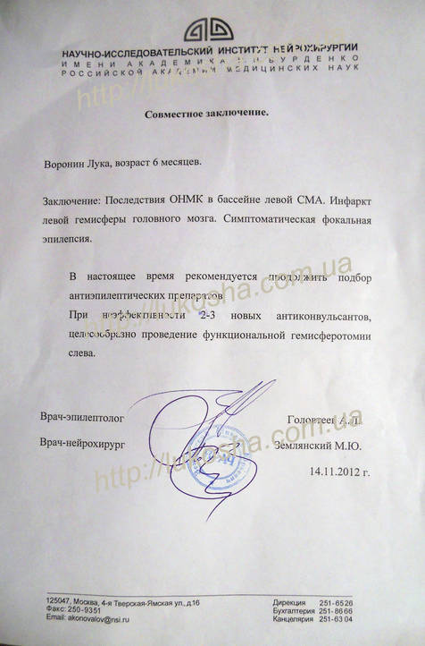 Ми зібрали кошти (26 000 евро – 1 рахунок) і в червні цього року пройшли обстеження в Клініці Текнон, Іспанія. І спробували медикаментозно вилікувати епілепсію. Але, на жаль, препарати не справляються. Необхідна термінова операція (всі документи, що це підтверждують, є в наявності).