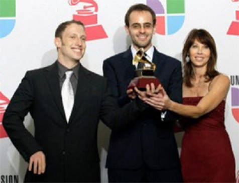 На фото: Алекс Топаллер (в центре) при получении "Грэмми" (англ. Grammy) - музыкальной премии Американской академии звукозаписи.