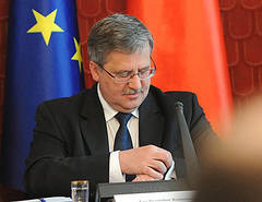 Поляки, звичайно, схвально відгукувалися про вибір свого президента. А польські видання рясніли заголовками на зразок "Коморовський як бідний родич", "Коморовський прийняв сміливе рішення", "Коморовський перемагає у поєдинку годинників у Києві".