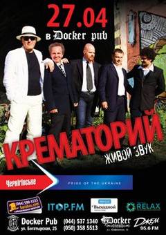 27 апреля в киевском "Докер пабе" состоится концерт известной советской и российскойя рок-группы "Крематорий" под руководстчом бессменного лидера и вокалиста, а также автора почти всех песен — Армена Григоряна.