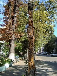 По вулиці Золотоворітській: Така скульптура вирізьблена прямо з дерева, яке росло, але з часом всохло...