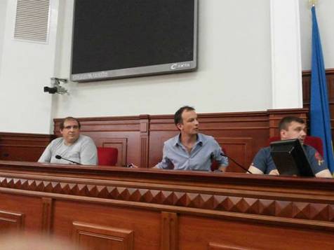 Міліція затримала чотирьох з п`яти громадських активістів, які сьогодні удень зайняли залу засідань Київради на Хрещатику, 36 з метою привернути увагу до "нелегітимності засідання", запланованого на понеділок, 19 серпня. Фото із зали засідань та коментарі щодо акції розмістив на своїй сторінці у Facebook один з учасників цієї акції Ігор Луценко.
