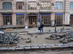 Будівельники почали укладати нову гранітну бруківку, а старе каміння розвезли по трьох київських складах.