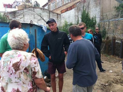 Активістці ініціативи «Воля» Марині Соловйовій так і не вдалось отримати відповідь на питання про мету їх перебування на провулку. Проте, дії хлопців говорять самі за себе: вони намагаються перешкодити людям, що від ранку розпочали демонтаж паркану і ліквідацію незаконного підкопу під сусідні будинки. Таким чином звичайні громадяни приступили безпосередньо до виконання постанови київського Окружного суду від 11 червня 2013 року про негайне припинення будівельних робіт на даній території, до набрання законної сили рішення суду з приводу законності будівництва.