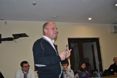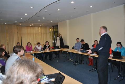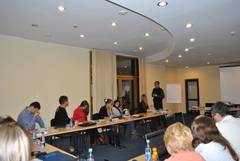 Наступного дня (28 жовтня 2011 року) Роман КОБЕЦЬ, співробітник інституту філософії НАН України, викладач кафедри філософії Національного університету «Києво-Могилянська академія», провів тренінг з питань аналізу державної політики. Перш за все, лектор ознайомив журналістів із основним категоріальним апаратом, що використовується в аналізі політики (policy, politics, public administration), зазначивши, що політичне життя (politics) – це боротьба за право здійснювати державну/публічну політику (policy). На думку лектора, аналіз політики є необхідним з огляду на те, що процес вироблення політичних рішень має бути більш науковим та менш заполітизованим. Р. Кобець виділив такі ознаки оптимальної політики: вона має бути інформованою, своєчасною, злагодженою, ефективною та чутливою. Під час тренінгу учасники мали можливість застосувати надбані знання на практиці та провели аналіз зацікавлених сторін щодо державної політики у сфері цифрового мовлення.