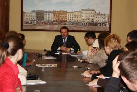 Після цього журналісти мали змогу поспілкуватися із Олегом СИНЮТКОЮ, першим заступником міського голови м. Львів. Він висвітлив питання підготовки міста до проведення чемпіонату Європи з футболу у 2012 році, зокрема зосередившись на питаннях побудови стадіону, ремонту доріг у м. Львів та за його межами, реконструкції громадського транспорту та розповів про відкриття стадіону «Арена Львів», що відбулося 29 жовтня 2011 року.