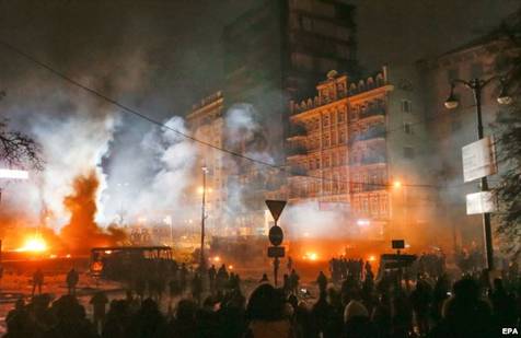 Вулиця Грушевського у ніч на 21 січня 2014 року