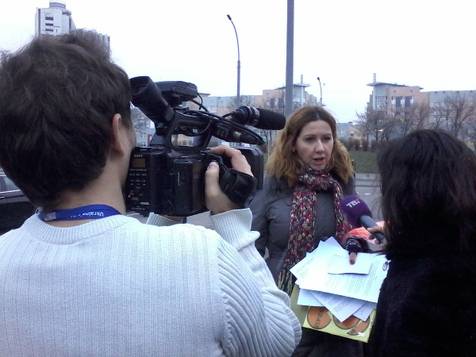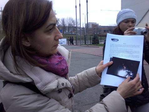 Активісти «Стоп цензурі» Оксана Романюк (Інститут масової інформації) та Наталя Соколенко (ГО «Телекритика») на вході до Міжнародного виставкового центру (МВЦ) вручили звернення особисто близько 15 міністрам закордонних справ, зокрема, Карлу Більдту (Швеція), Радославу Сікорському (Польща), Гідо Вестервелле (Німеччина), Сергію Лаврову (Росія), помічнику заступника Держсекретаря США та іншим.