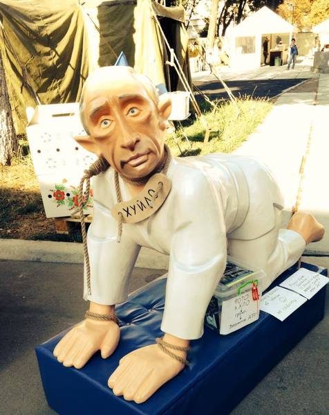 Найбільше грошей для бійців зумів залучити стенд дизайнерки Ольги Навроцької та фото-стенд із пластмасовим Путіним. Останній залучив майже 10 000 грн.