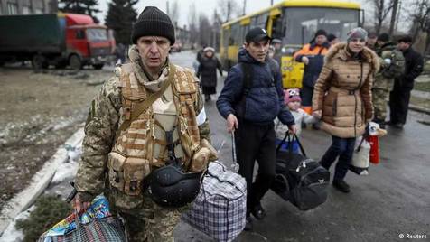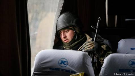 Солдат украинской армии, покидающий Дебальцево.