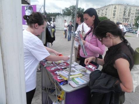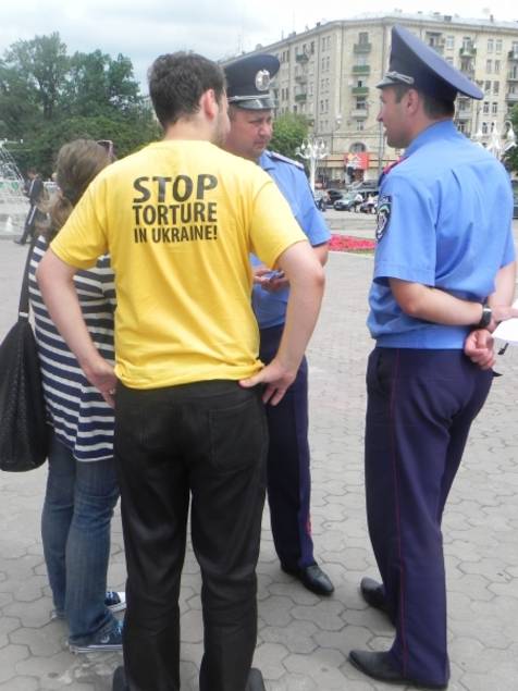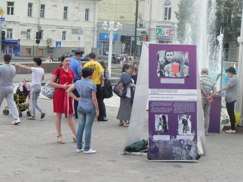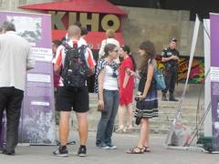 P.S. Захід організований неурядовою організацією «Центр Громадянських Свобод» в партнерстві з чеською організацією “People in Need”. Партнер у Харкові – Харківська правозахисна група. Харківська міська влада погрожувала виставку розігнати о 15:00. Проте, цього не сталося – якраз в цей час до стендів підійшла велика група вболівальників у жовтогарячих футболках – голандці. Очевидно, саме це й завадило владі розігнати.