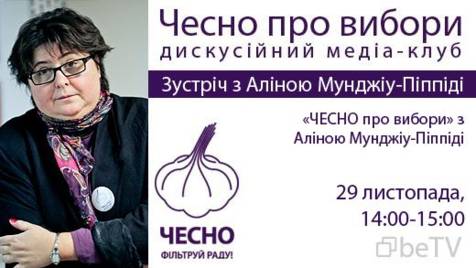 29 листопада з 14:00 до 15:30 відбудеться чергова зустріч медіа-клубу «ЧЕСНО про вибори» за участі відомої активістки, експерта у боротьбі з політичною корупцією - професора Аліни Мунджіу-Піппіді.