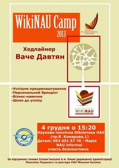 WikiNAUCamp – освітній проект започаткований Інститутом післядипломного навчання, з метою якісної подачі новітніх знань. Основна цінність такого заходу в унікальності контенту.