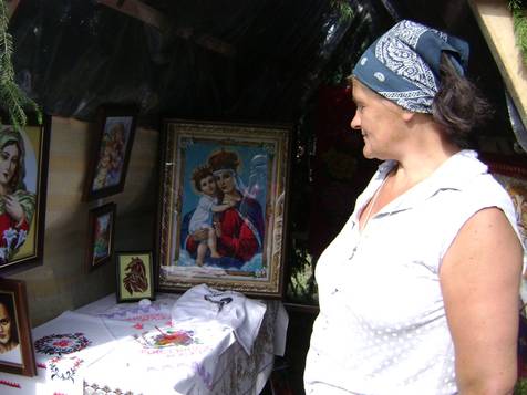 Ціни розраховані відразу на туристів. За вишиванку просили від 500 до 2 тисяч гривень. А от картини майстрині оцінили ще дорожче. Наприклад, за вишиту та оздоблену ікону Божої Матері просили 4 тис. гривень.