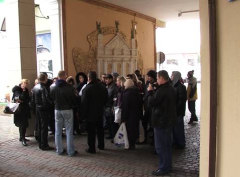 Обіцяли і не заплатили! Півсотні членів ДВК і навіть виборчі "кореспонденти", а також спостерігачі від Партії Регіонів прийшли під Львівський обласний штаб Партії Регіонів вимагати свої обіцяні 500 гривень.