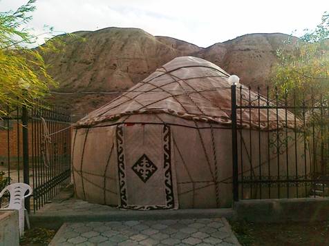 На стінах кафе — картини. Кожна друга зображує сюжети із життя видатного предка… Манаса. Навколо кафе стоїть кілька юрт. Як виявилось пізніше, це було не просто кафе, а придорожній мотель. Юрти, як ви, мабуть, здогадались, — не що інше, як мотельні номери:)