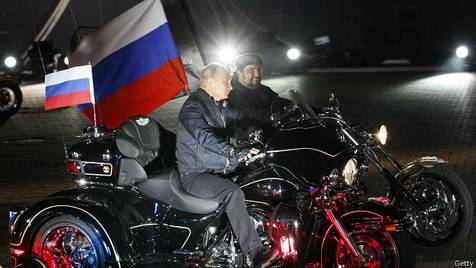 Когда и с чего началась трогательная дружба Президента с Хирургом, я понятия не имею. Но этот альянс идеально вписывается в ещё один широко обсуждаемый путинский комплекс: его навязчивое пристрастие к позёрству в духе "крутых парней". Вожак стаи, охотник, культурист - и вот он же, на трёхколёсном супербайке, во главе колонны мотоциклистов в чёрной коже! Мечта мачо.