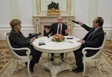После переговоров в Москве 6 февраля Ангела Меркель и президент Франции Олланд вернулись ни с чем – наиболее красноречиво о ситуации в Москве говорят не только пессимистичные фотографии переговоров, но и отсутствие совместной пресс-конференции.