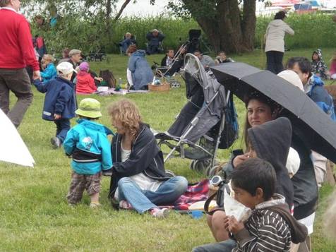 Розміщувалися в основному на траві, на прихоплених із собою простирадлах, ковдрах. Тут-таки розкладали їжу. Більшість людей узяла харчі з дому. Безлічі торговельних точок із наїдками-напоями під час масових заходів, як в Україні, у Швеції не зустрінеш. Та й на тих, що є, асортимент не дуже великий. Національної шведської страви скуштувати мені не вдалося (хоча кажуть, що їжа тут чудова). Зате зустріла таку вже звичну для українців шаурму :).