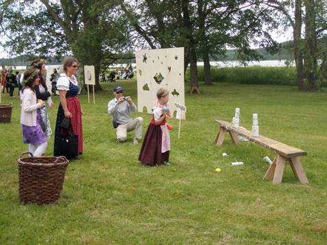 А ще побачила чимало людей у національному вбранні — і дітей, і дорослих. Дехто, як виявилося, був так одягнений, бо грав у гумористичних сценках, які показували також тут, на галявині, серед публіки. Але дехто вбрався в старовинний одяг просто так, бо це один зі святкових звичаїв.