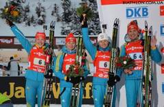 Наша четвірка у складі Юлії Джими, Віти і Валі Семеренко та Олени Підгрушної на 45 секунд випередила французьку команду!!! Третіми стали німкені, пише sportanalytic.