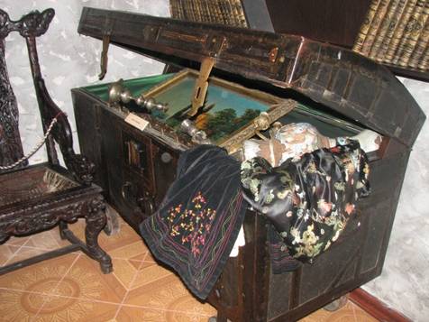 Поряд зі зброєю збережена і скриня з приблизним начинням, яку возили із собою воїни у похід. Тут усе XV століття - від одягу до побутових речей, підсвічників та навіть ваз і картин. А за кілька метрів розташувалися справжні лицарські обладунки.