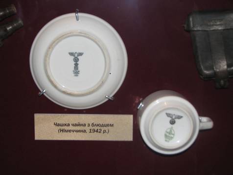 Іще одна експозиція присвячена Другій світовій війні. На стендах серед багатьох інших раритетів — посуд часів окупації.
