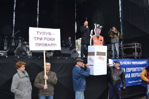 Сьогодні о 16-й вечора на Театральній площі Черкас розпочалася акція демократичних сил Черкащини «Прийшов час діяти!». Одразу на початку акції з’явилися провокатори – гурт міцних хлопців, які прийшли на площу, швидко накинули на себе футболки з написом «ВО «Свобода» та «Бий жида» і напали на найближчих мітингувальників. Дехто з гурту став обливати людей рідиною, схожою на кефір.