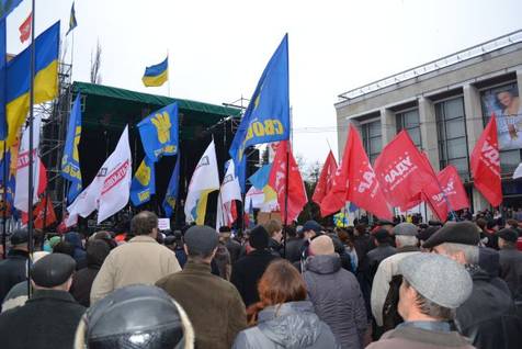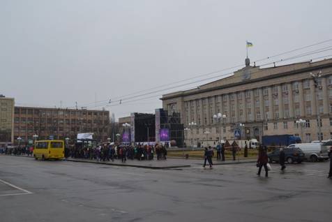 При цьому неподалік Театральної площі на Соборній площі міста проходить концерт, організований владою.