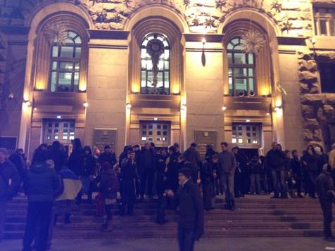 Міліція Києва пропонує мітингувальникам добровільно залишити будівлі Київської міськадміністрації та Будинку профспілок, нагадуючи, що самовільне захоплення адміністративних будівель є протизаконним. ВО "Свобода"у відповідь заявляє: Якщо активістів із КМДА витіснять силою – відповідатиме В.Захарченко.