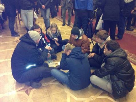"Протягом декількох останніх годин правоохоронці пояснюють присутнім, що самовільне захоплення адміністративної будівлі є протизаконним. Тобто, всі громадяни, які перебувають у приміщенні, своїми діями порушують низку норм кримінального та адміністративного законодавства та підлягають відповідальності. Нині присутнім в цих приміщеннях запропоновано добровільно залишити адмінбудівлі та не ускладнювати ситуацію", - йдеться в заяві київської міліції.