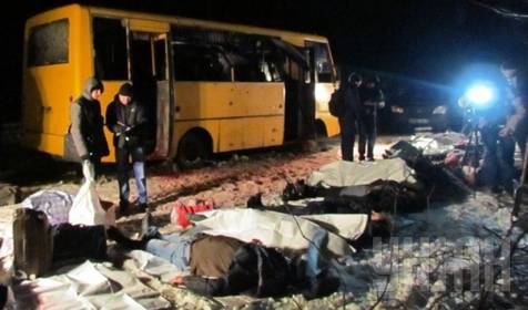 «Ошибка помельче» – расстрелянный из «Града» пассажирский автобус на блокпосту в Волновахе. Предполагали, вероятно, что он вез украинских военнослужащих, да промашка вышла.