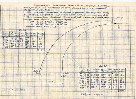 1. У Ан-72 перед левым разворотом самописцами прописан режим тарировки скорости 240 км/час, Ан-70 на этом участке летит со скоростью 260—270 км/час. Это непорядок — исключен факт полета строем.