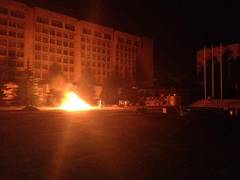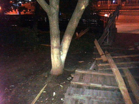 Як повідомляє сайт Studsvoboda.org.ua, паркан на поляні КПІ був зруйнований, а пізніше і спалений, групою з декількох десятків молодиків близько 23:15.