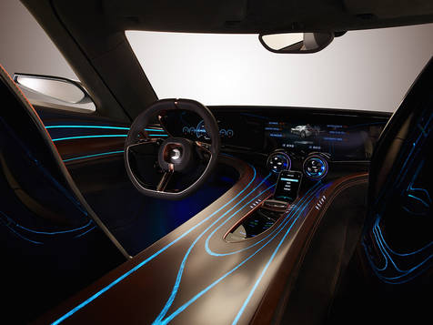 Помимо невиданных динамических характеристик автомобиль может похвастаться сенсорными органами управления, спрятанными под деревянной отделкой салона, и дисплеем на центральной консоли шириной 1,25 м. Длина гиперкара — 5257 мм, колесная база — 3198 мм. Интересна и ширина дверного проема — более 2 м.