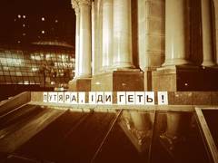 Ни одного партийного. На трибуне парень с гитарой начинает что-то петь. Вовсе на фарс не похожее. Кличко уезжает, оставляя броневик людям. Луценко провожают в машину. Прочие парни тоже рассеиваются по домам. А люди остаются. И будут стоять, похоже. До сих пор слышна музыка и лозунги. Кажется, пока что все происходит правильно. Хочется мне, чтобы в этой стране была вера в самих себя.