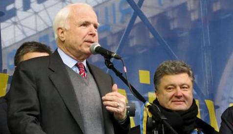 Маккейн наголосив, що він та його колега з Сенату не приїжджали до України, «аби втручатися в її внутрішні справи чи надавити перевагу одній стороні над іншою, а для того - щоб підтримати мирні прагнення усіх українців та затвердити їх суверенне право самим визначати майбутнє своєї незалежної країни».