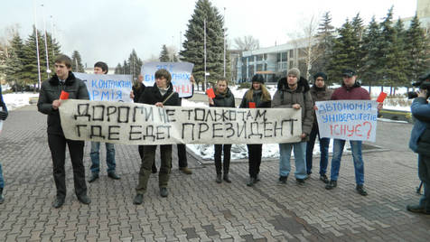 6 марта под стенами горсовета г.Енакиева молодежь подвела итоги двухлетнего правления Виктора Януковича и его команды. И они неутешительны… Молодежь требует от своего самого известного земляка ответить "за базар", а именно - за данные накануне парламентских и президентских выборов обещания.