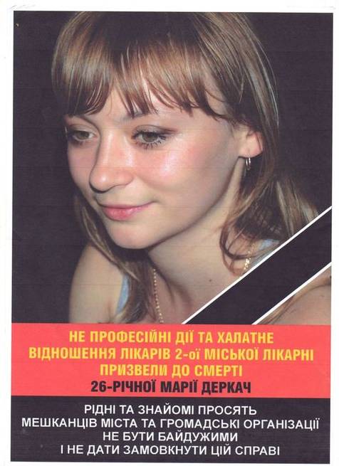 Вже два місяці, як немає серед живих 26-річної тернопільчанки Марії Деркач. Вона, як переконані рідні, померла через недбалість медиків. Різні перевірки справді встановили ряд недоліків у лікуванні дівчини, але все обійшлося лише дисциплінарними стягненнями