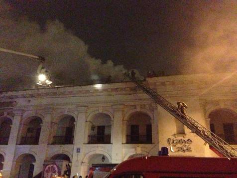 Прибула АППД і автодрабини з 21-ї і 25-ї пожежної команди та авто підйомник з 27-ї. Розгортання проводять з боку пам'ятника Сагайдачного.