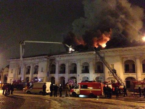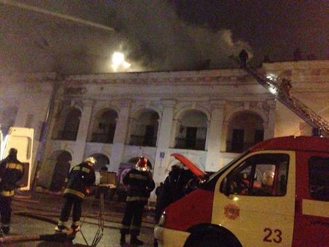 На Гостинному Дворі пожежа! Її виявили о 2:12 активісти. Одразу викликали пожежну службу, що прибула практично миттєво. Прибула пожежна команда №14. Знайти приблизне місце займання вдалося лише близько третьої ночі. Пожежники щойно повідомили, що не можуть дістатися місця займання через надвисоку температуру та задимленість. На підмогу приїхала пожежна команда №2 та штабний автомобіль пожежної служби «Віста», викликають машину з відкачки диму. Площа від пам’ятника Сковороді до Гостинного повністю задимлена. Дихати нічим.Горить саме те крило, в якому знаходяться активісти та заважаюча забудовнику бібліотека. Вірогідно, підпал.